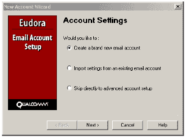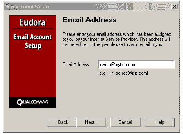 Click Next and the next New Account Wizard window, E-mail Address, appears.