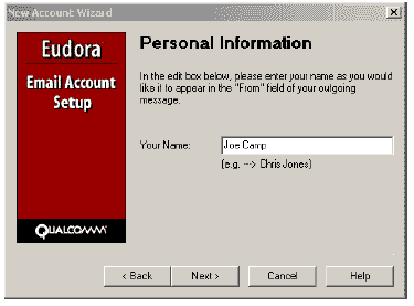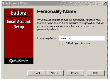 click Next. The next New Account Wizard window, Personality Name, appears.